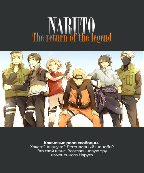 Форумная игра основана на одноименной манге и аниме «Naruto». Система игры: локационная. Наша история не только крутится вокруг каноничной сюжетной линии, но также имеет свою собственную "изюминку".